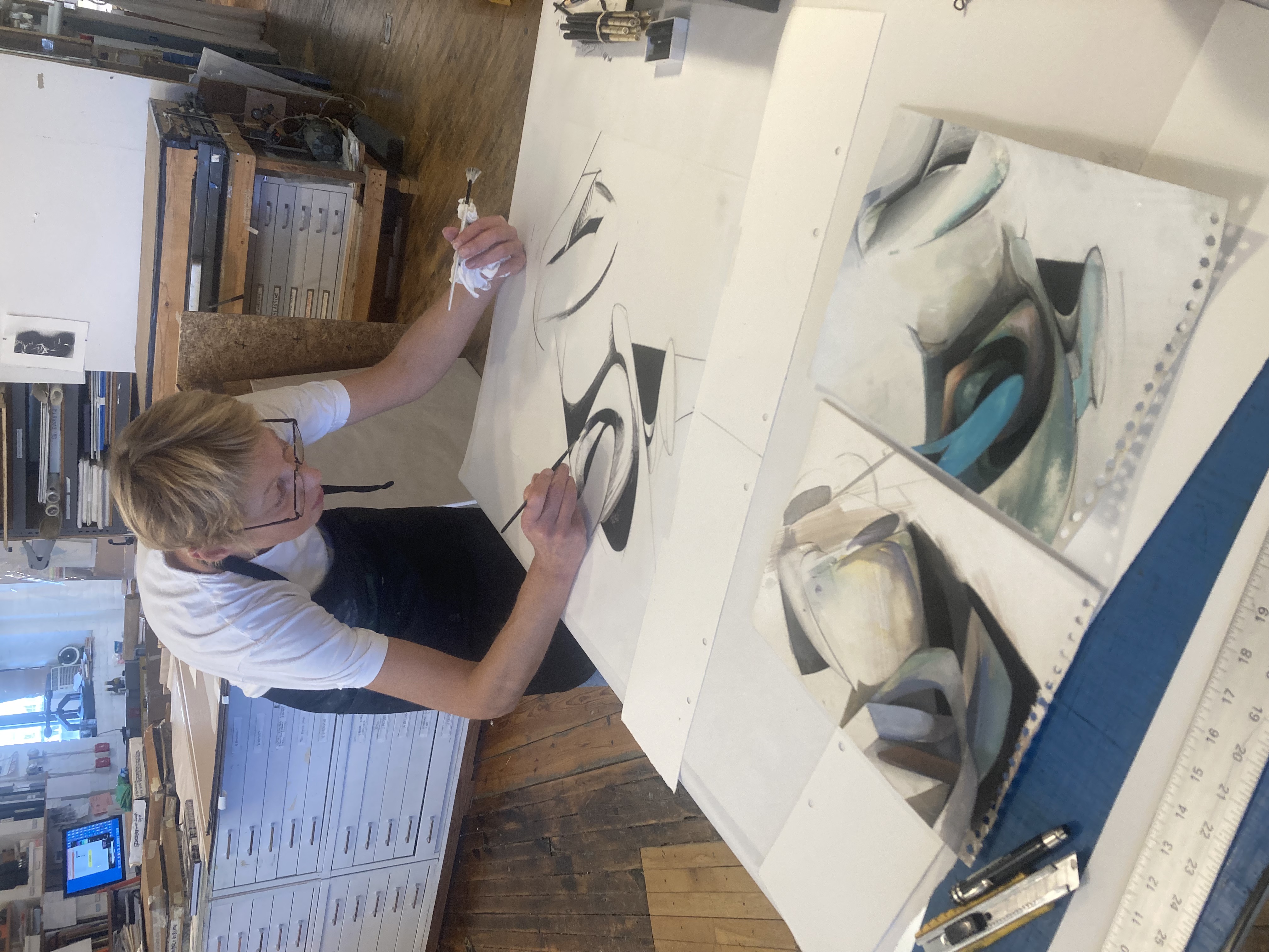 LARISSA TOKMAKOVA was born in Ukraine, studied painting in Moscow, and moved to New York in 1991. Her work has been widely exhibited, most recently at Vassar College. Chair of the art department at Saint Ann’s School in Brooklyn, she has also taught painting at Ateliers Fourwinds (France) and the Hebei Academy (China). In 2013, Larissa created 29 paintings to accompany Mike Daisey onstage for his month-long monologue ALL THE FACES OF THE MOON at The Public Theater in New York. |